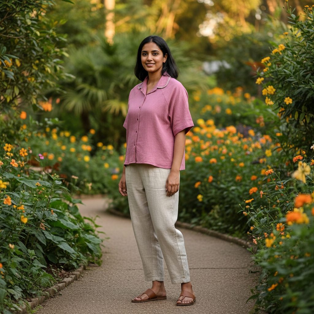Crafted from pure Kala cotton, this Purple Sand Shirt embodies quiet elegance and everyday comfort. Naturally dyed in a soothing mauve hue derived from earth pigments, it celebrates the raw beauty of handwoven fabric.