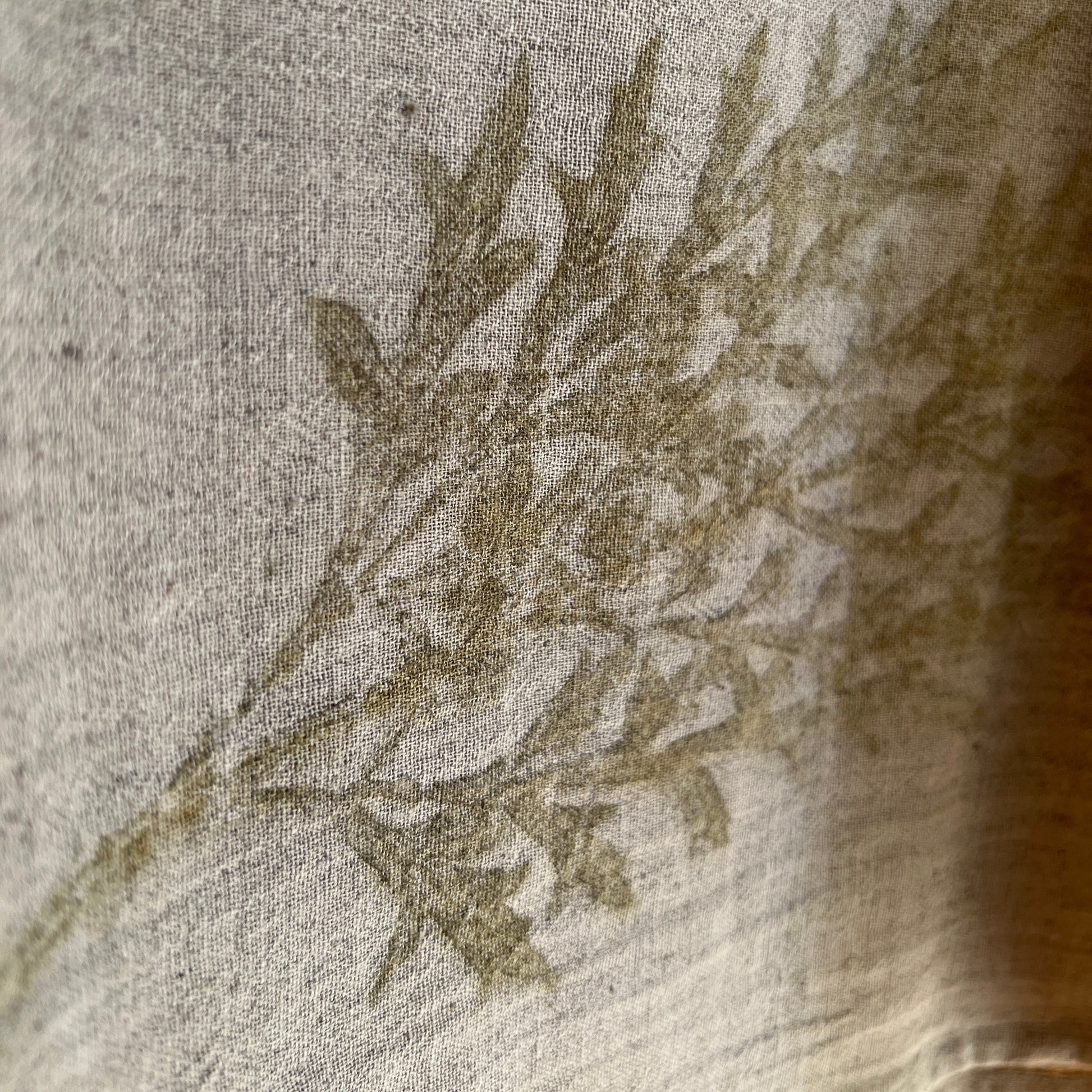 A piece of nature you can wear — this eco-printed Kala Cotton blouse is crafted with care using real Shiny Oak leaves to create organic, one-of-a-kind patterns. Each print tells its own story, naturally dyed without chemicals, celebrating the art of slow, sustainable fashion.