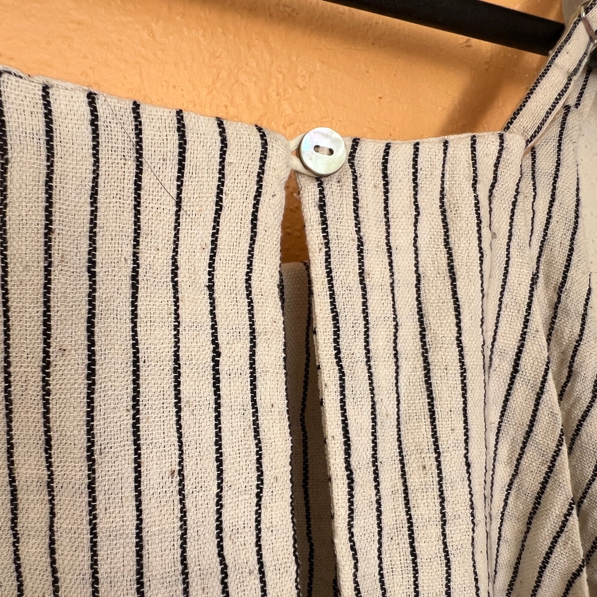 Crafted from 100% organic Kala Cotton, this striped blouse brings together effortless style and conscious living. Handwoven on traditional looms by skilled artisans, the fabric retains its natural strength, breathability, and rustic charm.